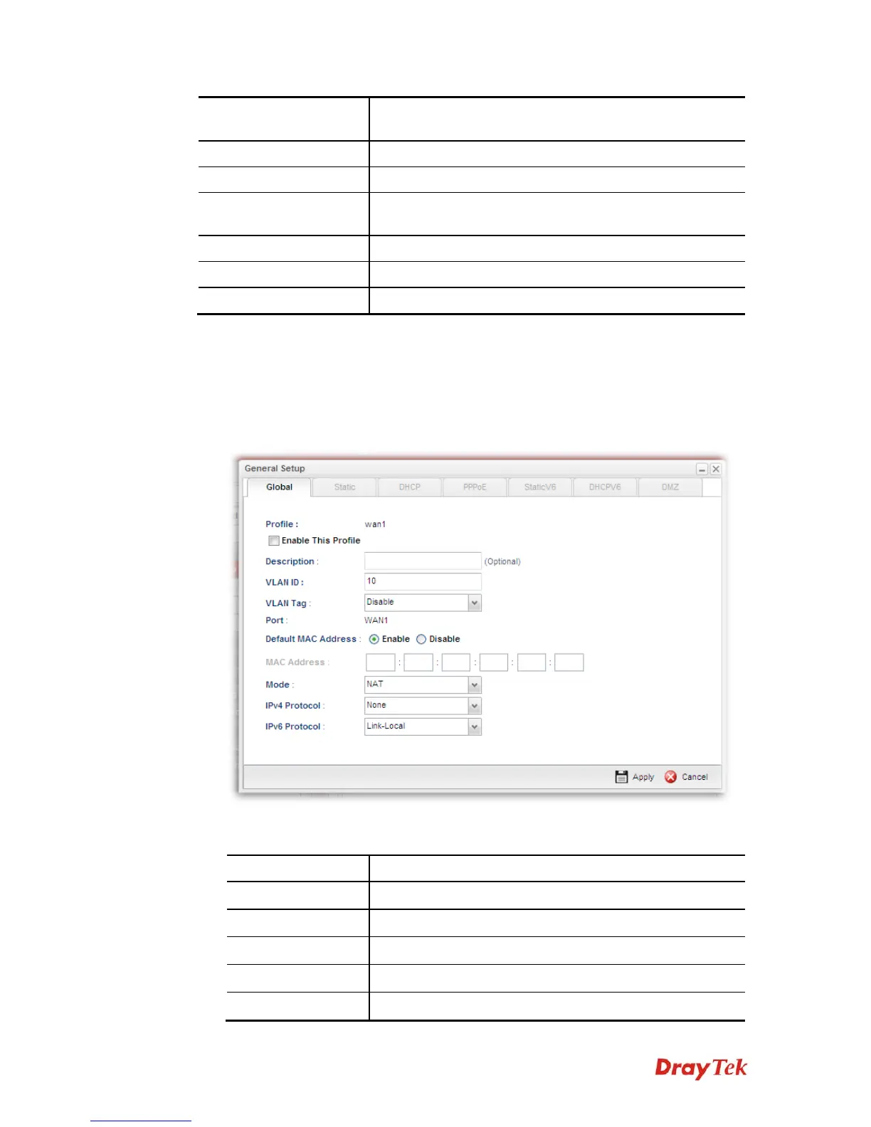 1. Open WAN>>General Setup. Choose wan1/wan2/wan3/wan4 profile and click the