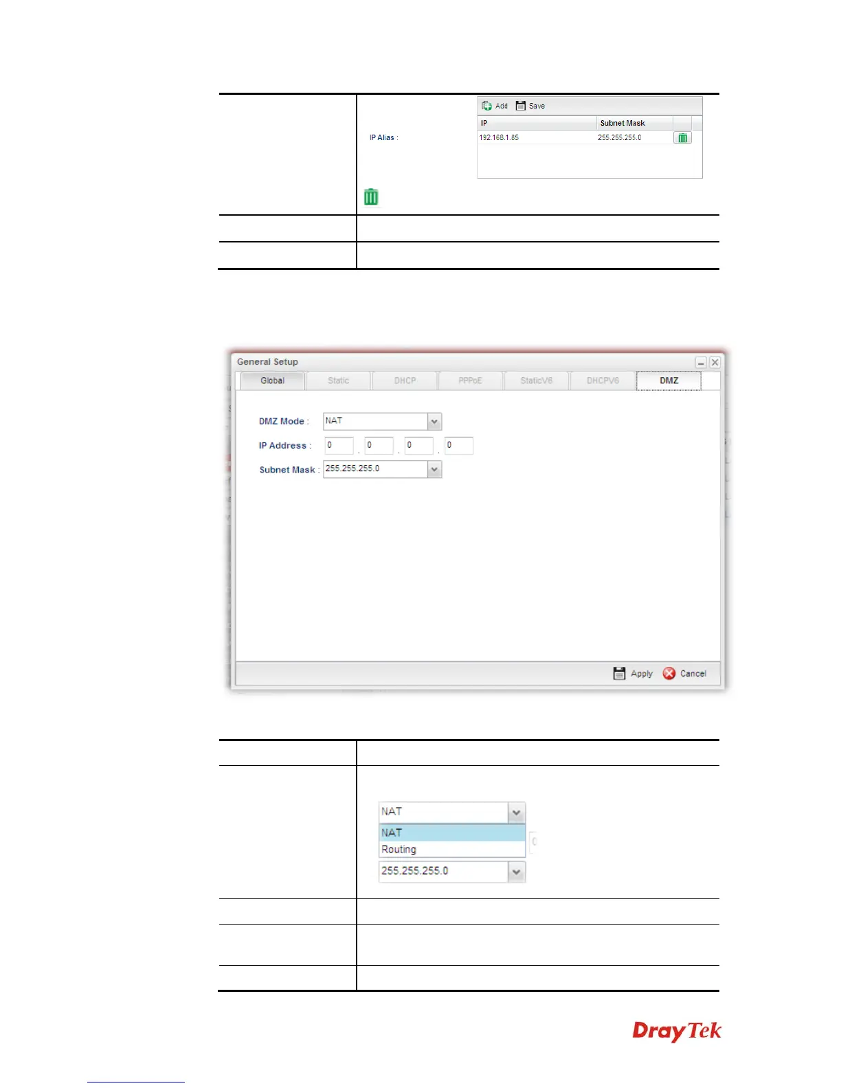 Available parameters are listed as follows if you choose NAT as DMZ Mode: