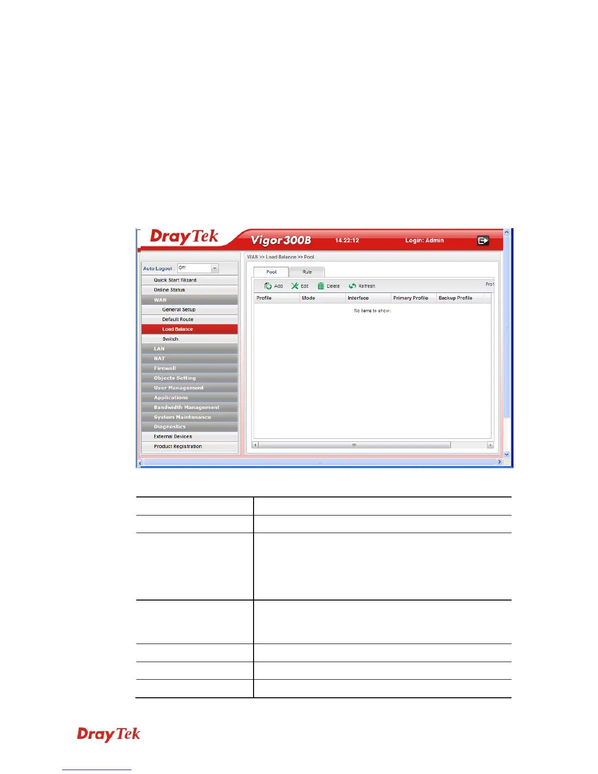 Vigor300B supports a load balancing function. It can assign traffic with protocol type, IP