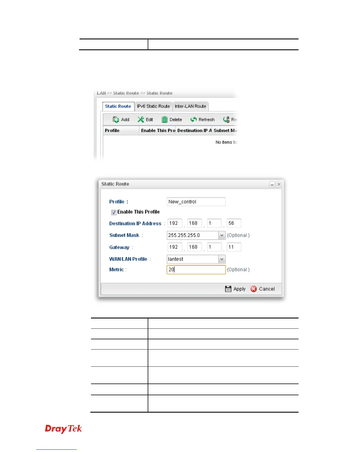 1. Open LAN>>Static Routing and click the Static Route tab.
