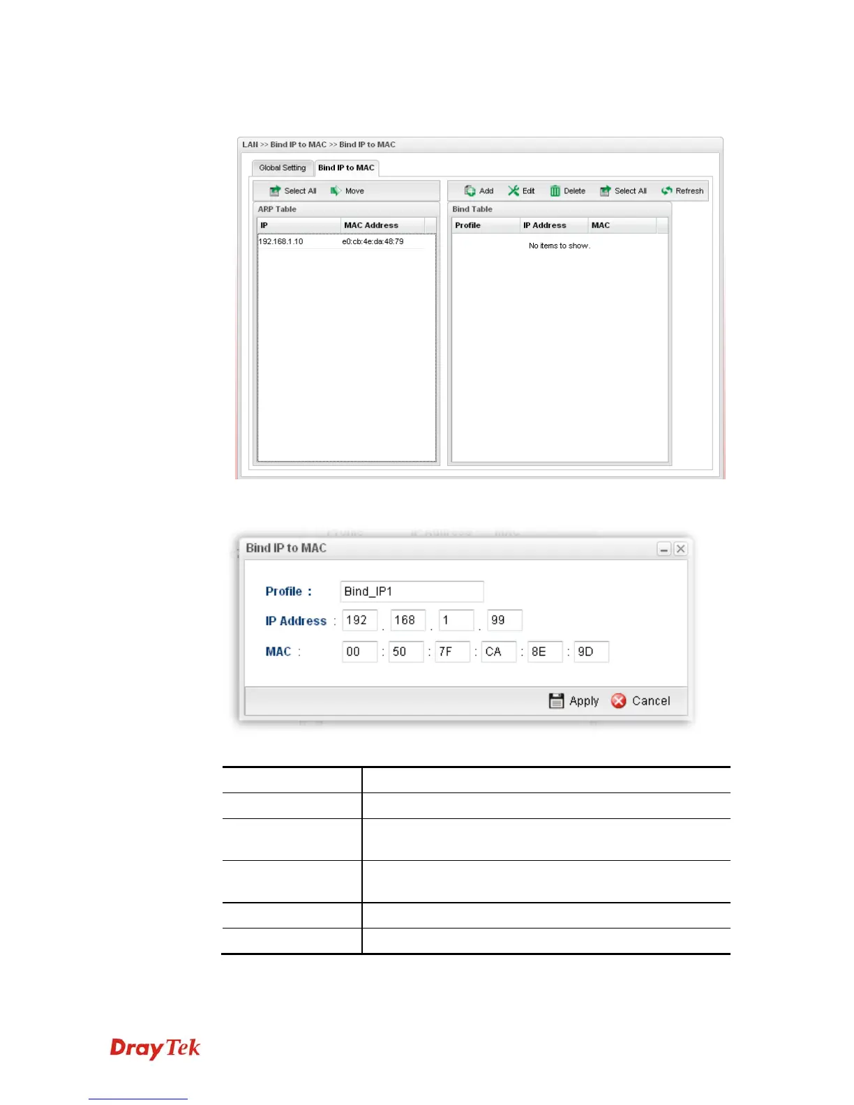 3. When you finish the settings, click the Bind IP to MAC tab to get the following