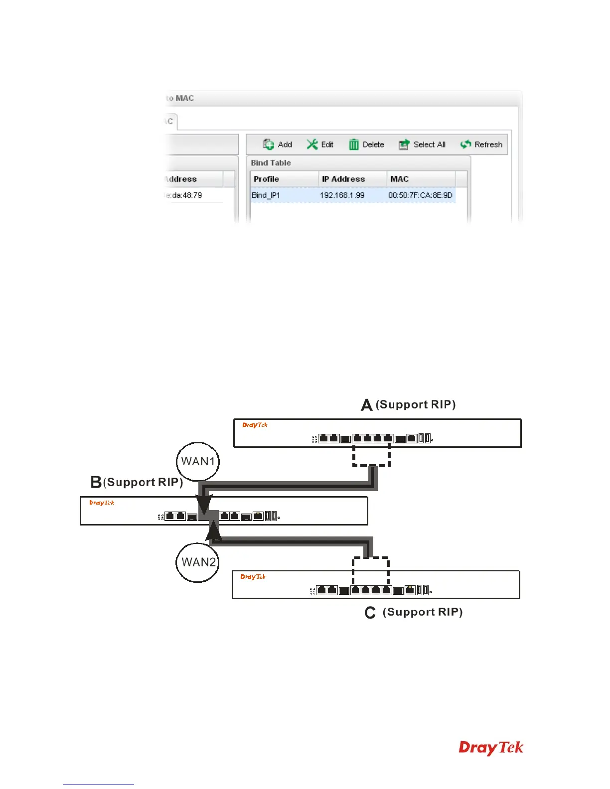 Suppose A supports RIP on WAN1/WAN2/WAN3/WAN4, B supports RIP on WAN1 and