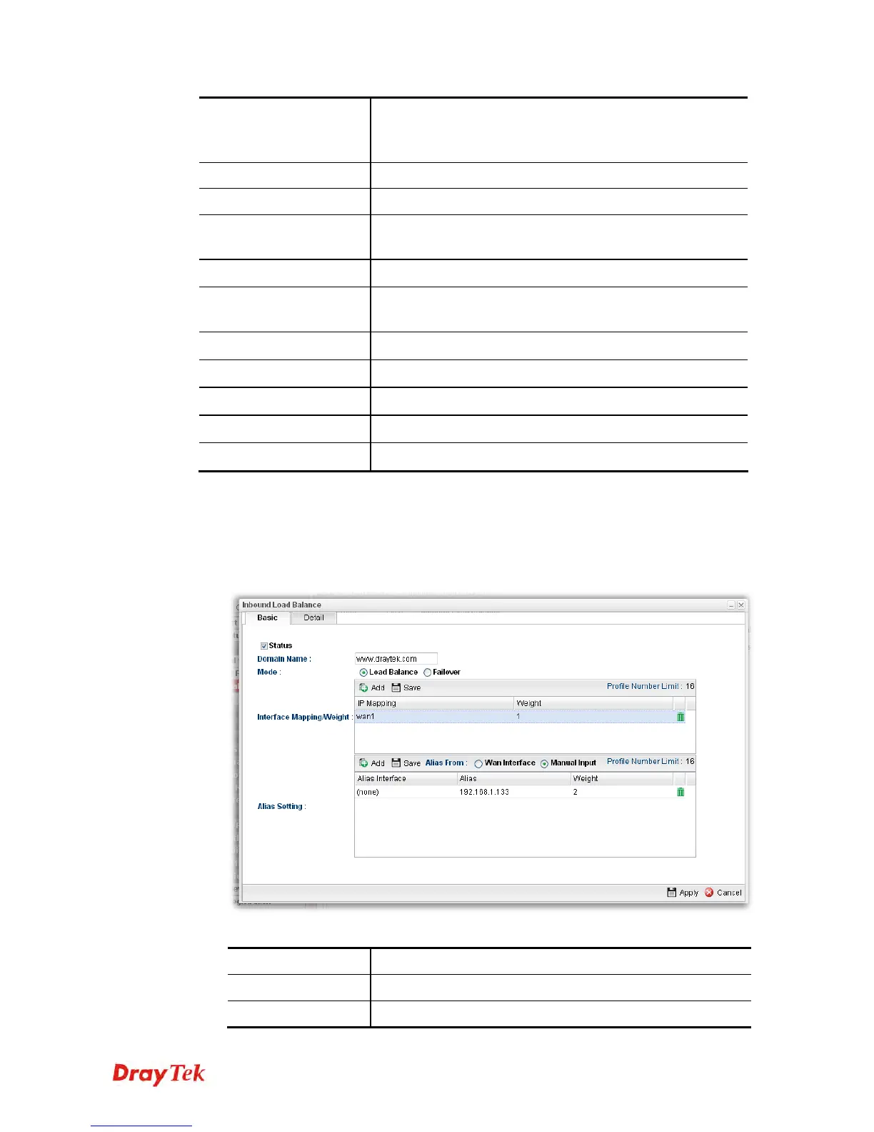 Such page allows you to create a new WAN profile for inbound load balance.