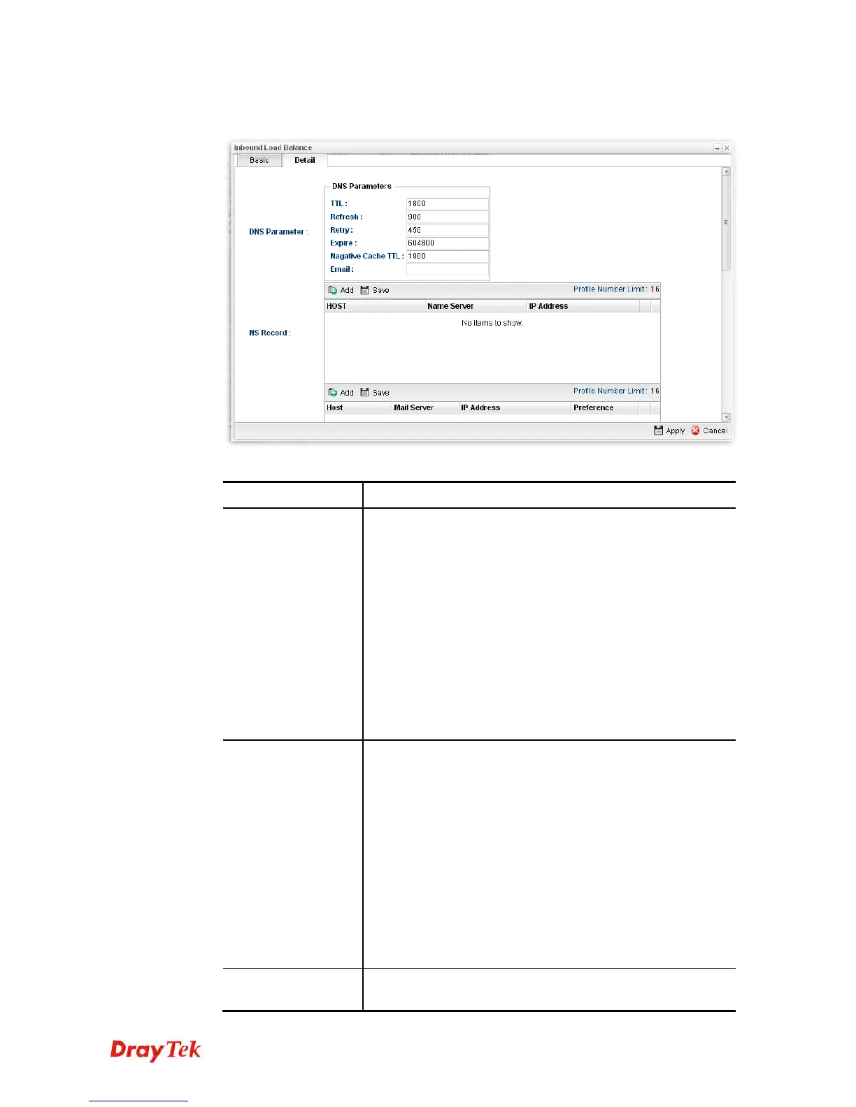 3. After finished the settings on the Basic page, click the Detail Tab to open the following