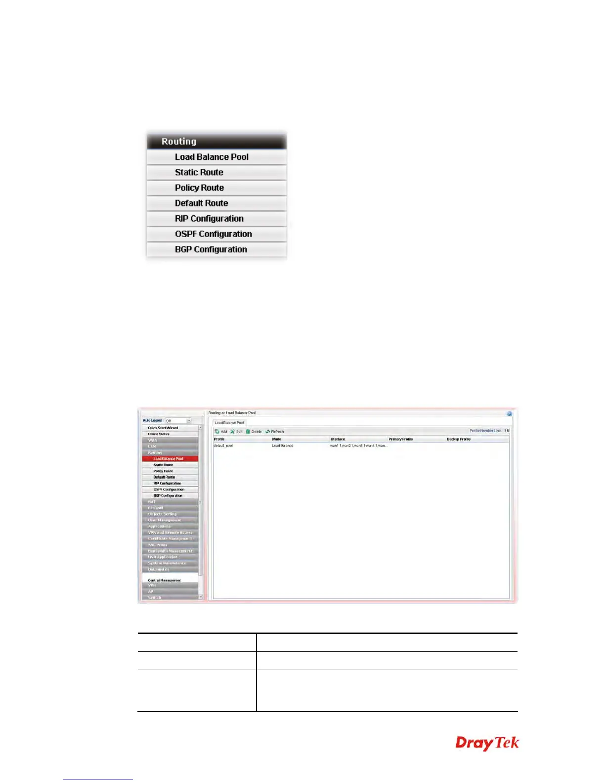 This menu contains Static Route, RIP Configuration, OSPF Configuration and BGP