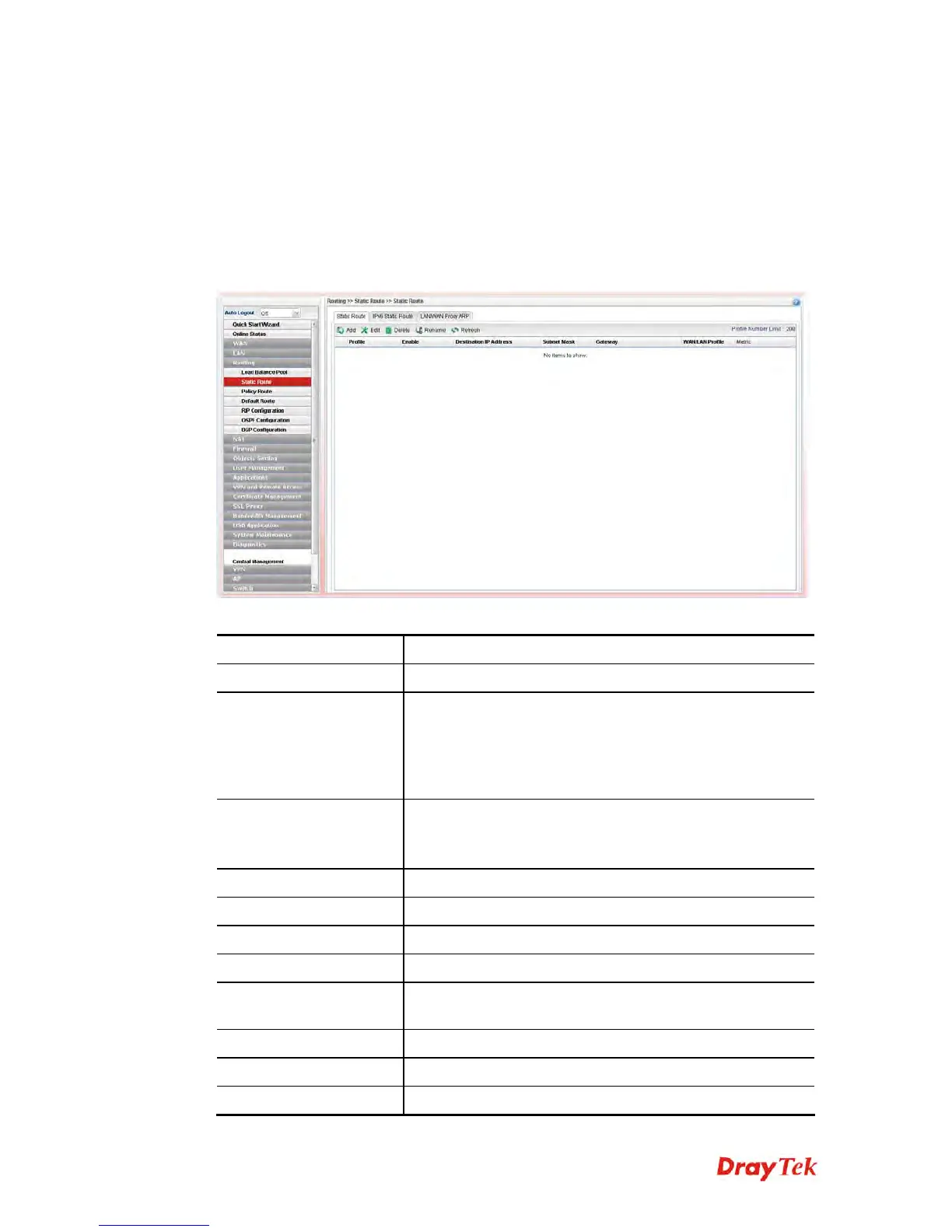 To delete a static route setting, simply select the one you