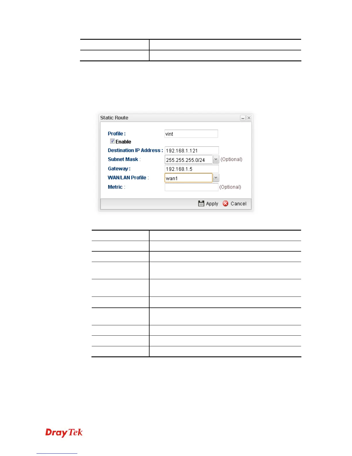 1. Open Routing>>Static Routing and click the Static Route tab.