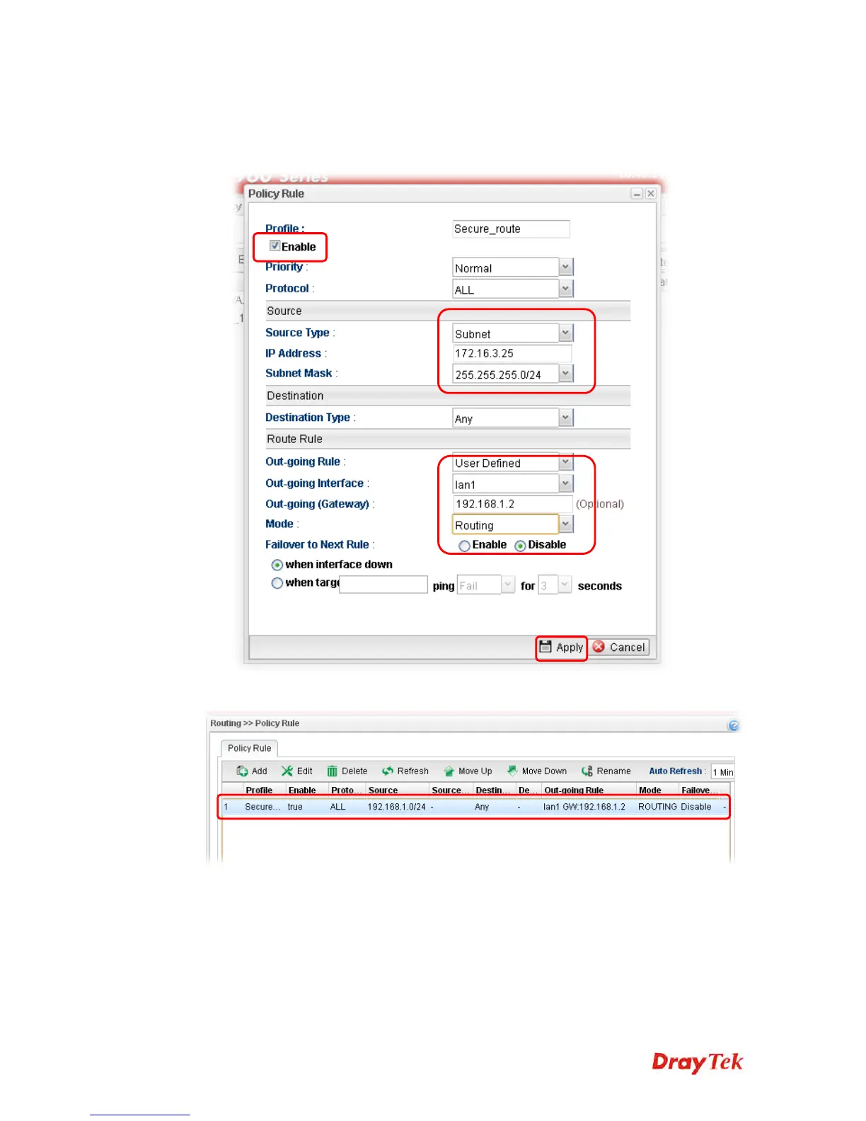 Out-going (Gateway); and click Disable for Failover to Next Rule.