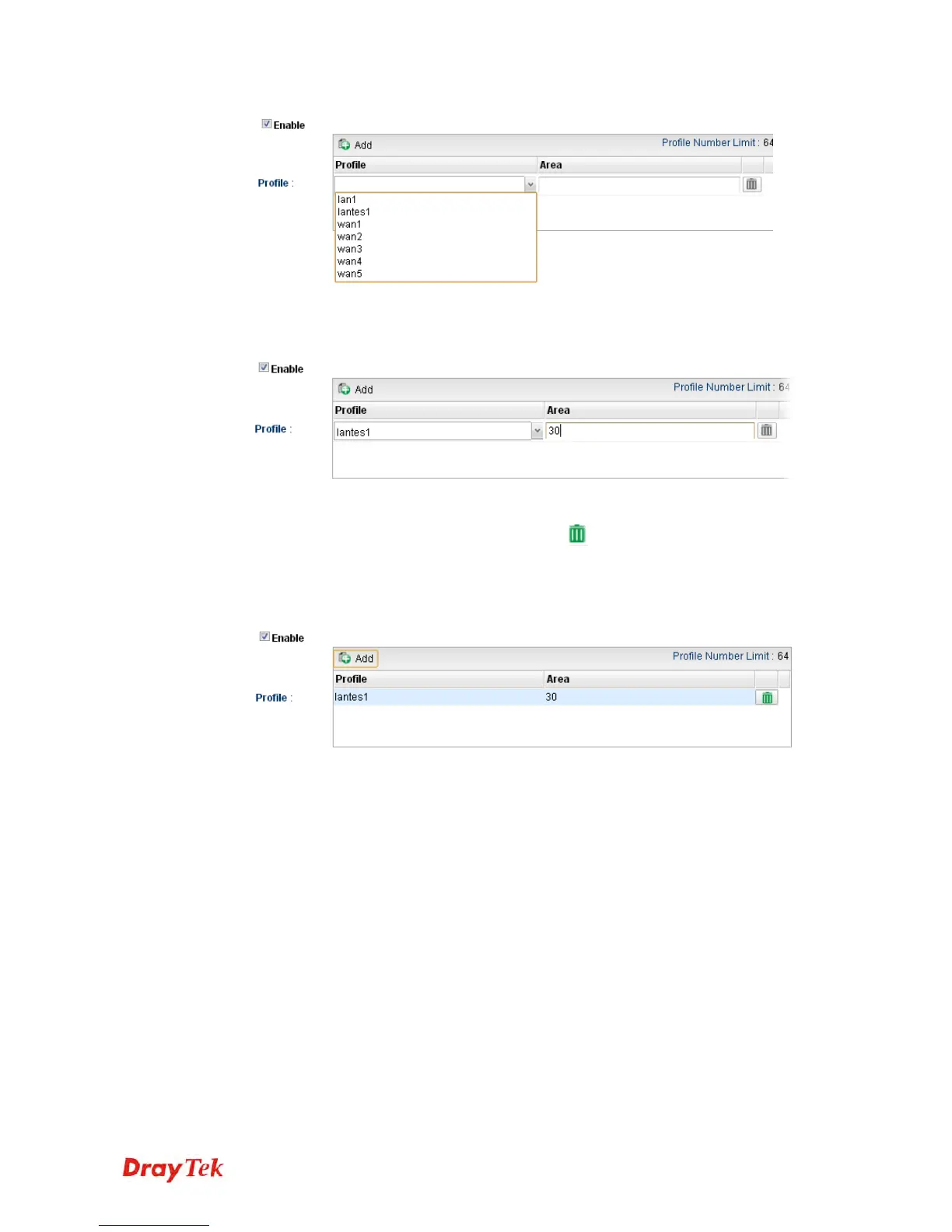 value of Area (either 0.0.0.0 ~ 255.255.255.255 or 0 ~ 4294967295) for that profile.