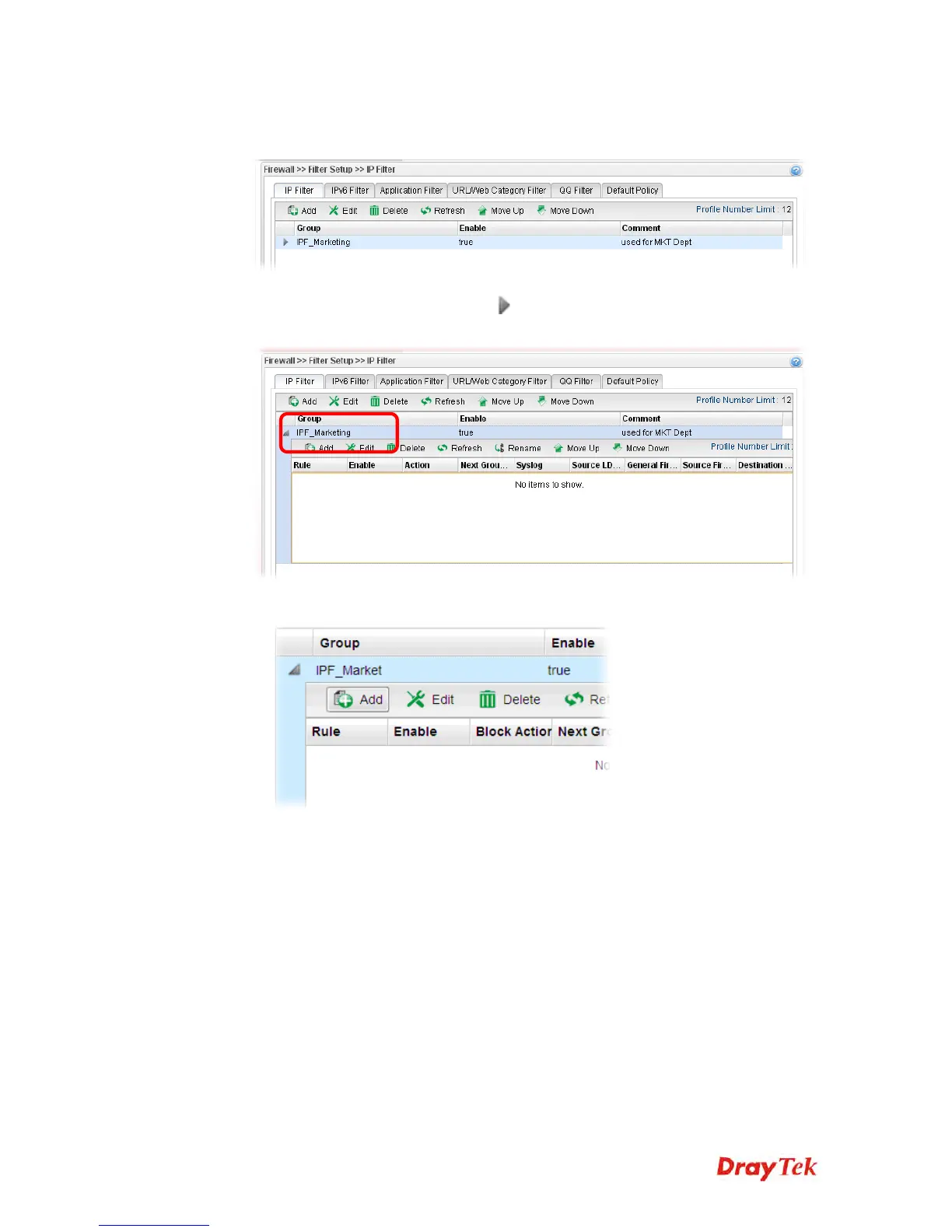 profile. A setting page will appear for you to add new IP filter rule profile.