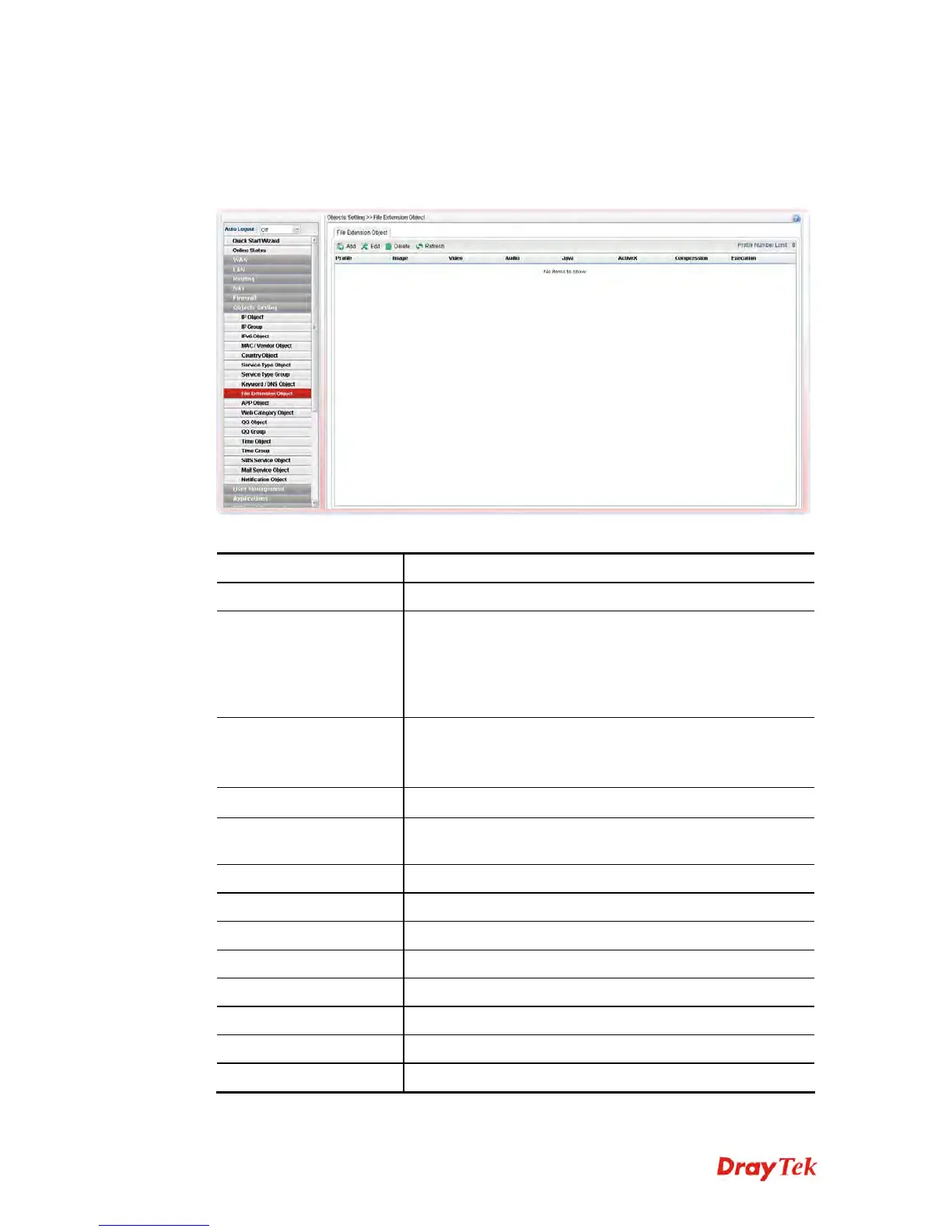 This page allows you to set file extension profiles which will be applied in Firewall. All the