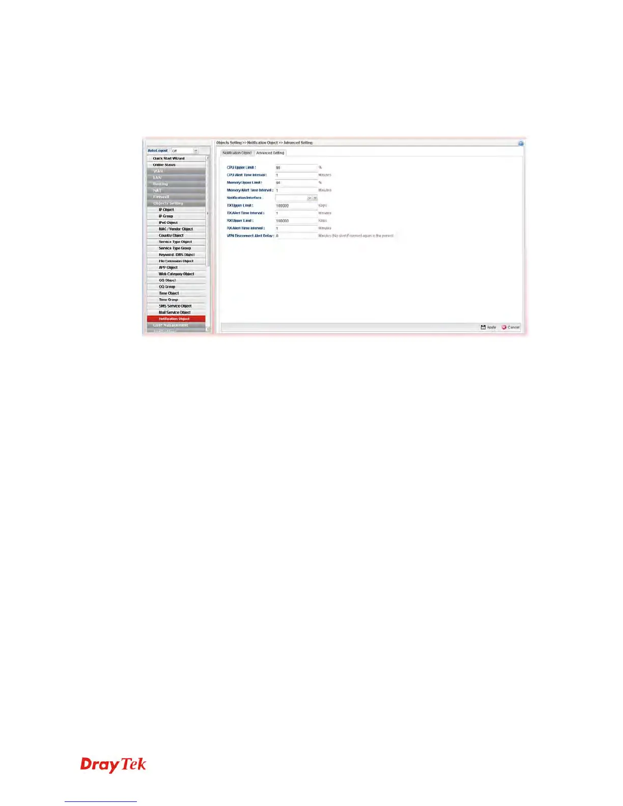 Such page is used to set the limit value for CPU, Memory, TX / RX. When CPU, Memory,