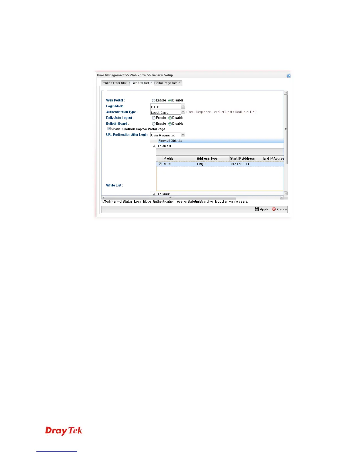 7. Open User Management >> Web Portal and click the General Setup tab to open the