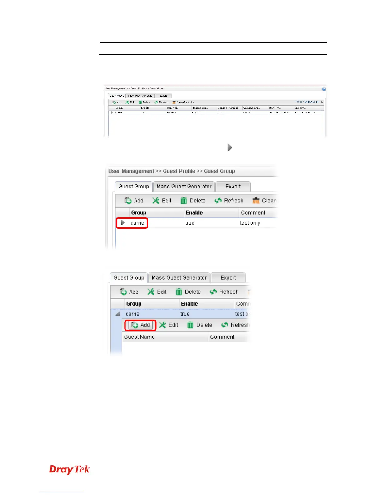 group profile. A setting page will appear for you to add new guest list.