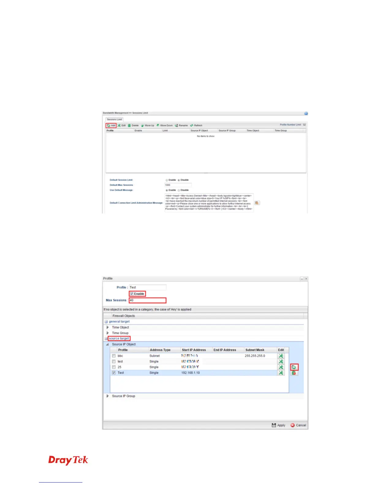 client. This note demonstrates how to set up Session Limit with Vigor3900.