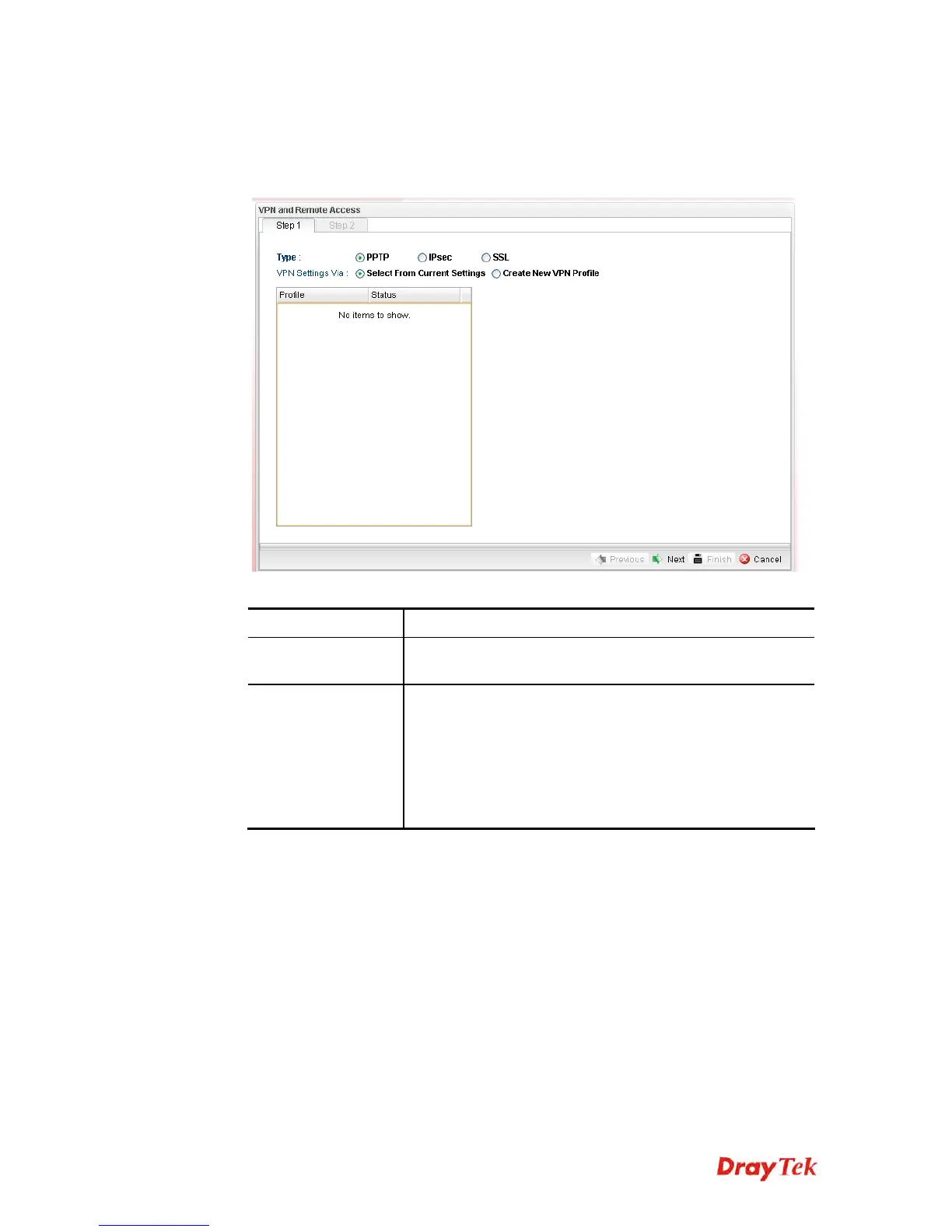 Specify which protocol (PPTP/IPsec/SSL) will be used for