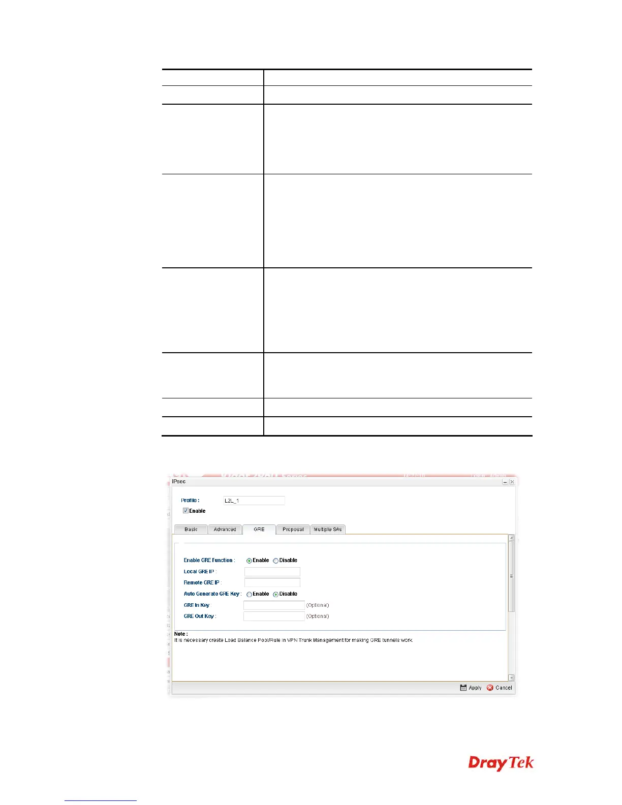 For GRE over IPsec Tunnel, please enable GRE function and enter your GRE IP for