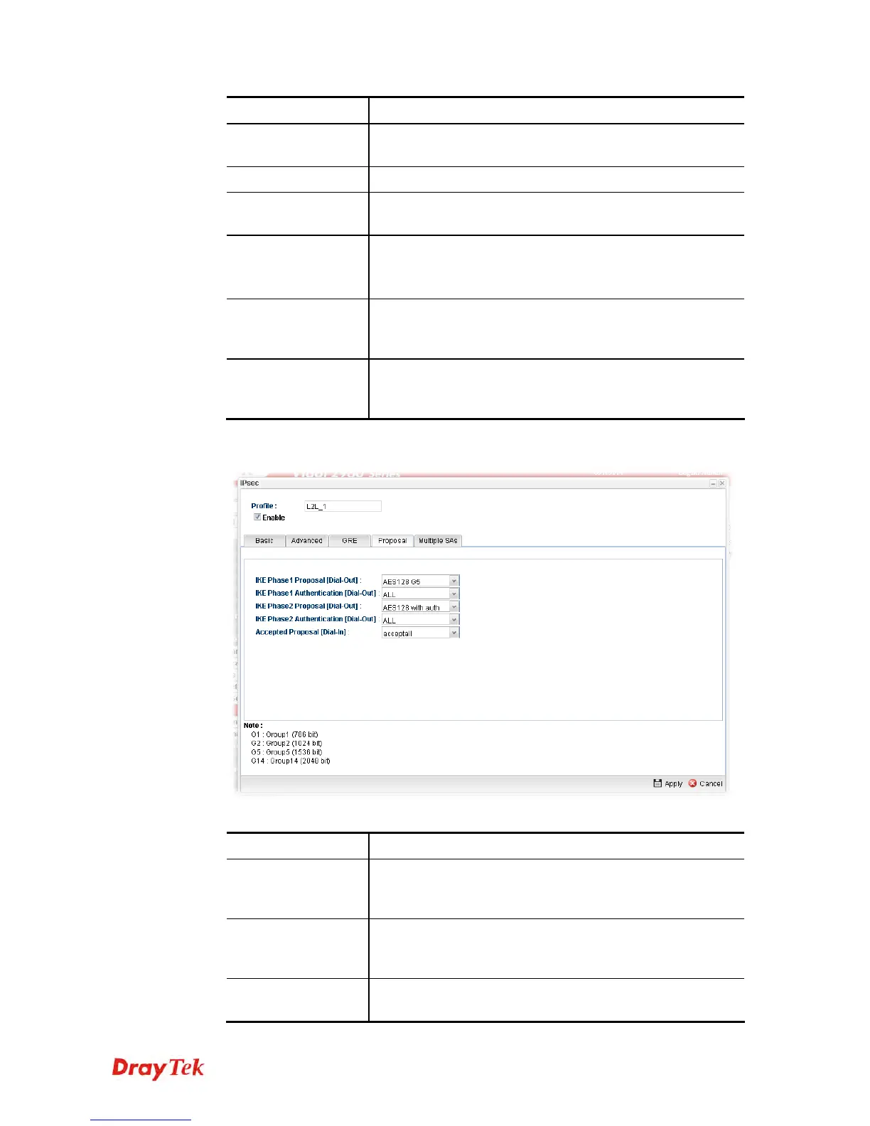 The Proposal tab lists encryption and authentication algorithms to be negotiated with