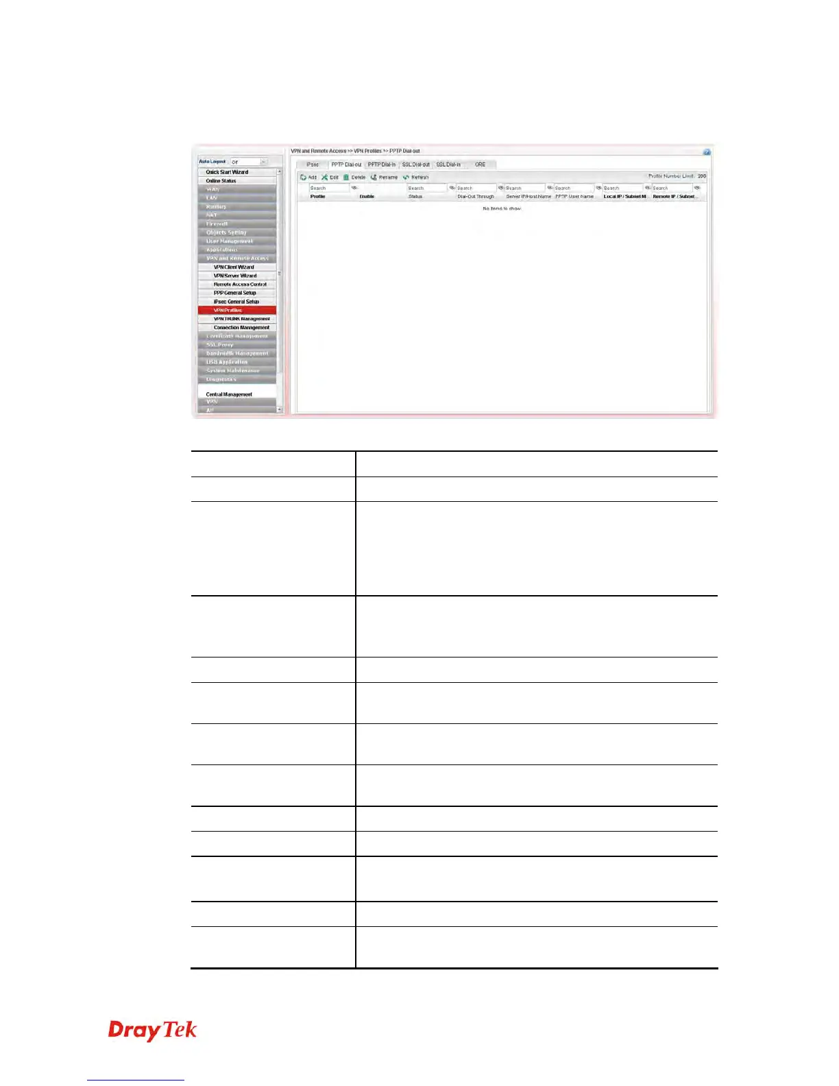 Display the name of LAN to LAN profile with PPTP dial-out/SSL dial-out tunnel.