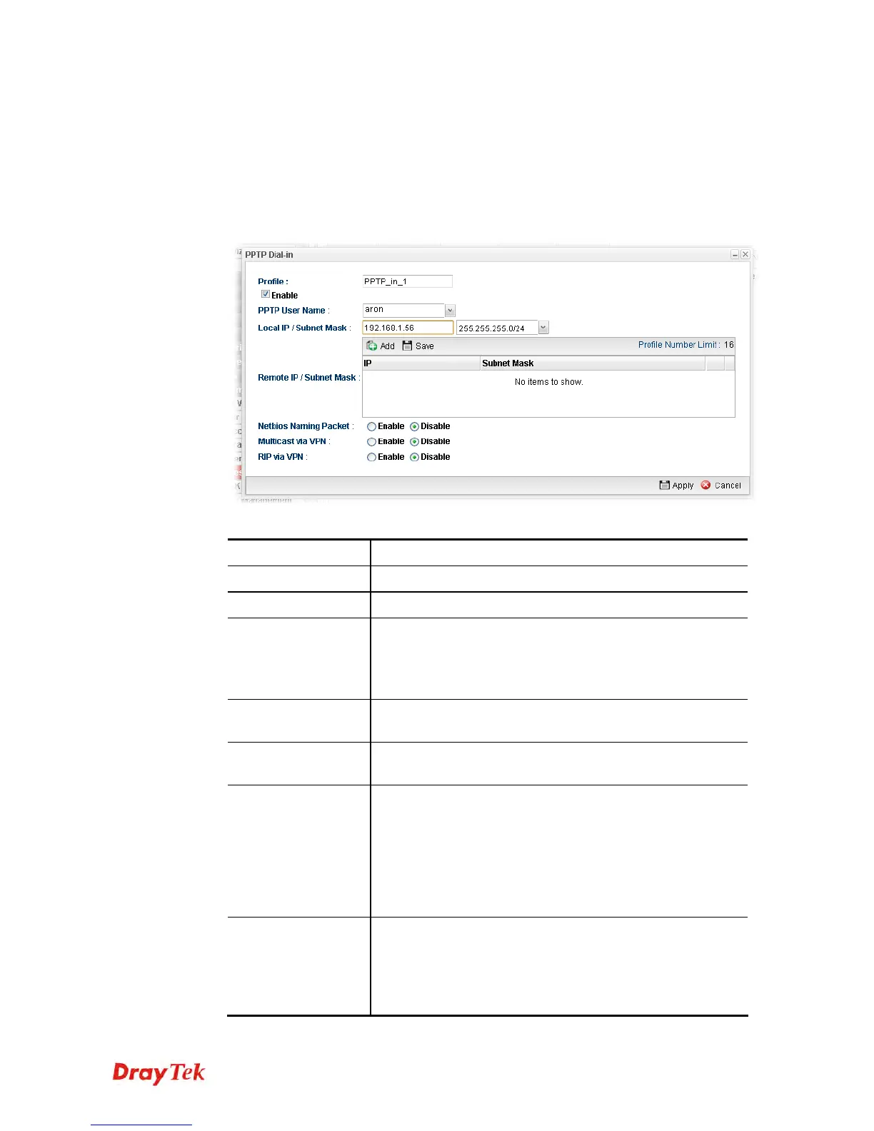 Below will guide you to create a PPTP dial-in profile for VPN connection: