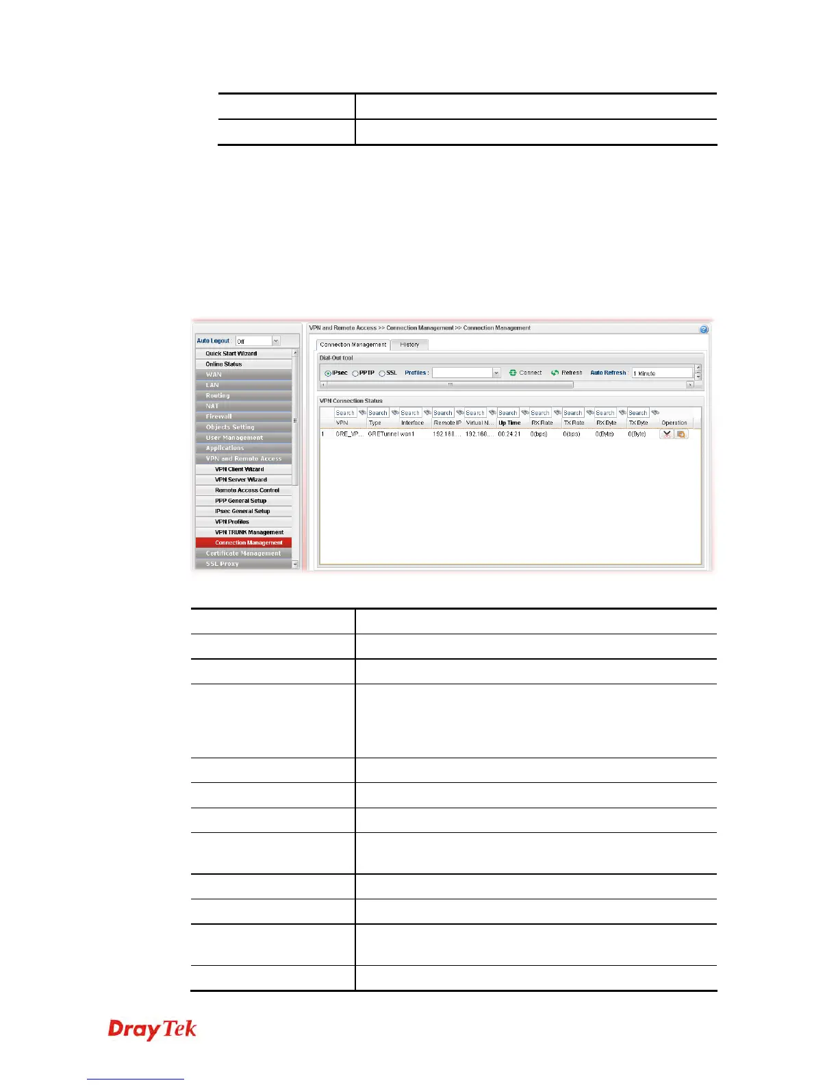 You can find the summary table of all VPN connections. You may disconnect any VPN