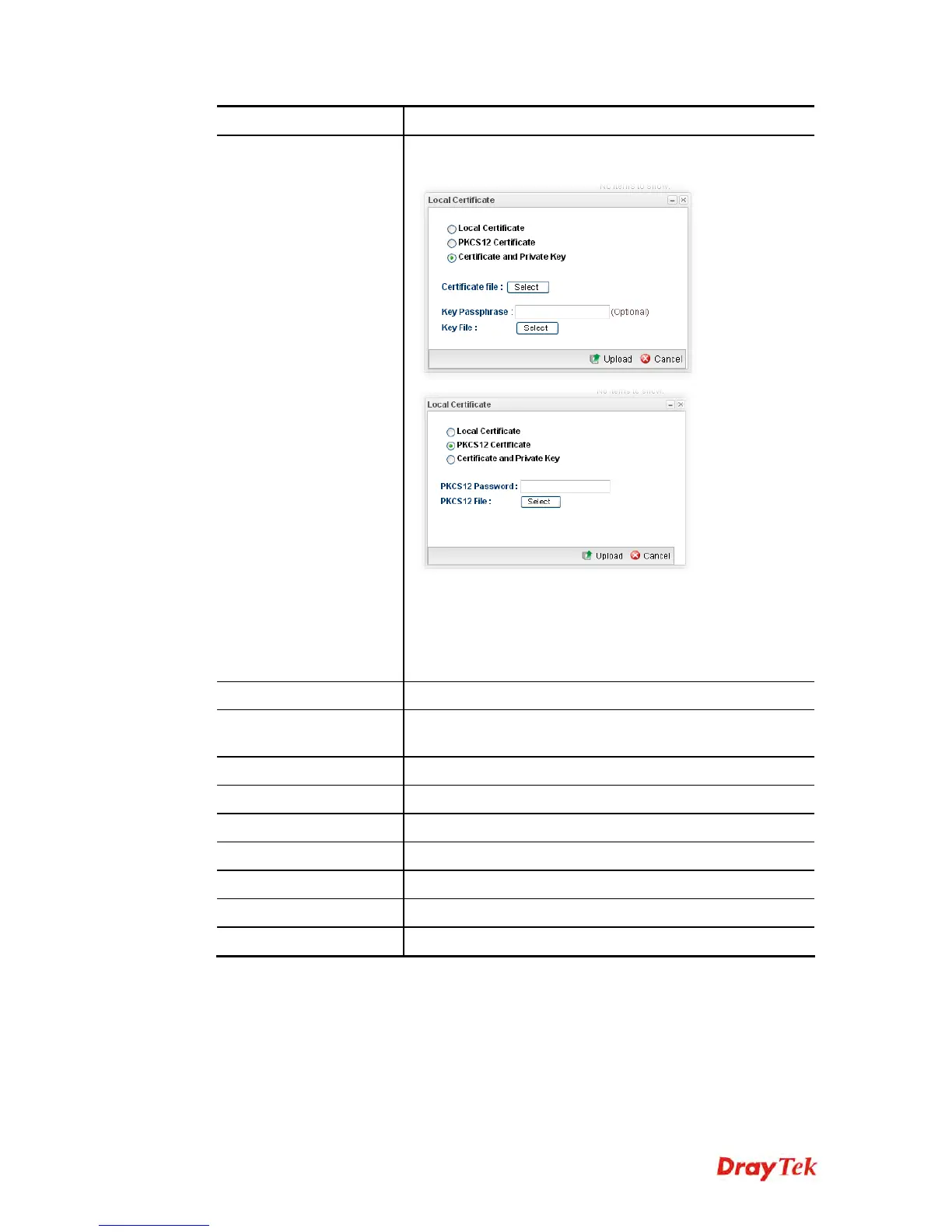 Passphrase, Key File, PKCS12 Password and PKCS12 File).