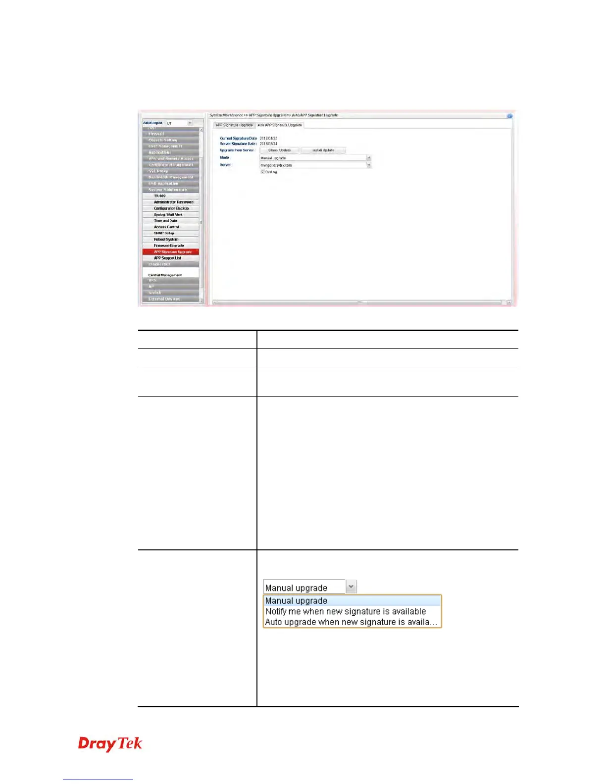 This page allows Vigor router to execute signature upgrade automatically.