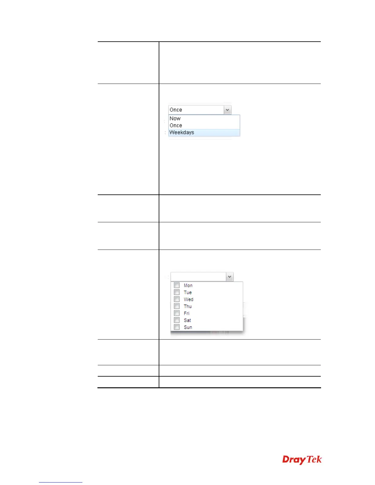 Weekdays – The action will be performed for the selected