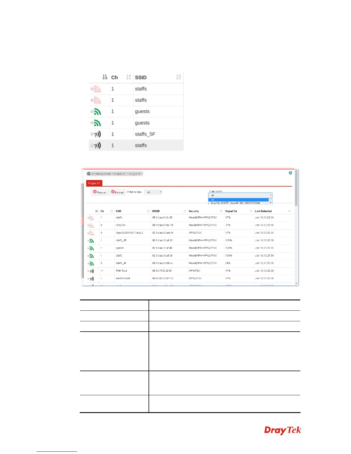 Rogue, Unknown) of access points. That is, only the selected