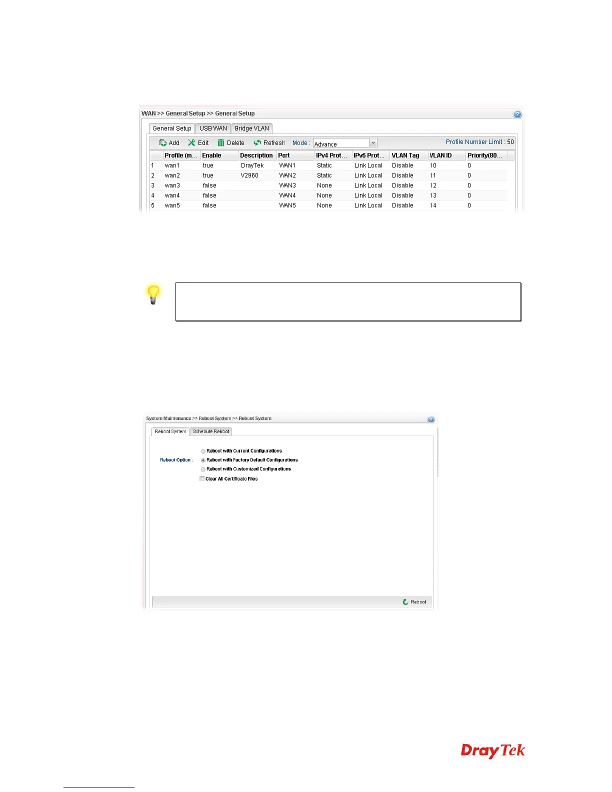 screen will appear. Choose Reboot with Factory Default Configuration and click Reboot.