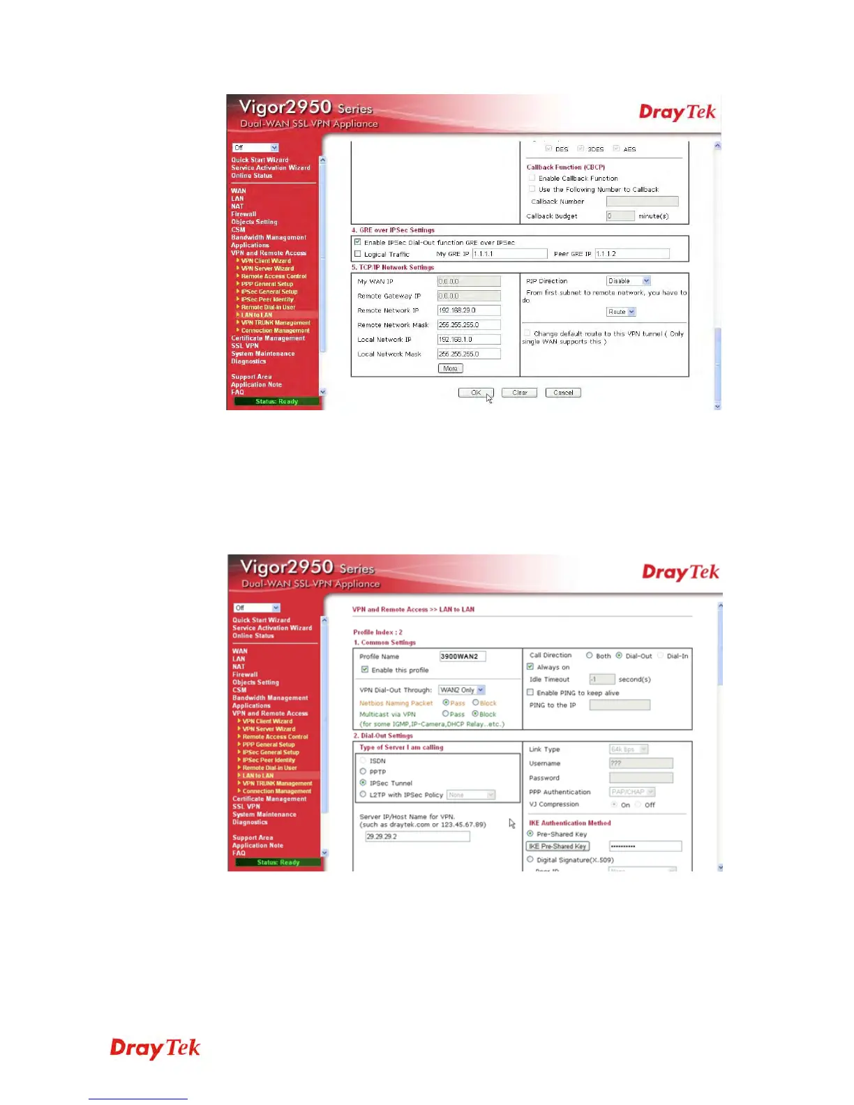 VPN tunnel will be used by WAN1 of Vigor2950. The second VPN tunnel will be