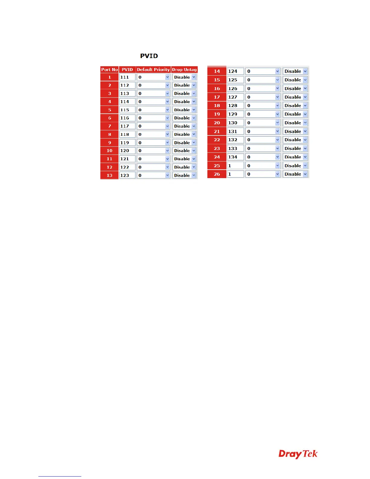 PVID means VigorSwitch2260 will check and add VLAN tags while receiving