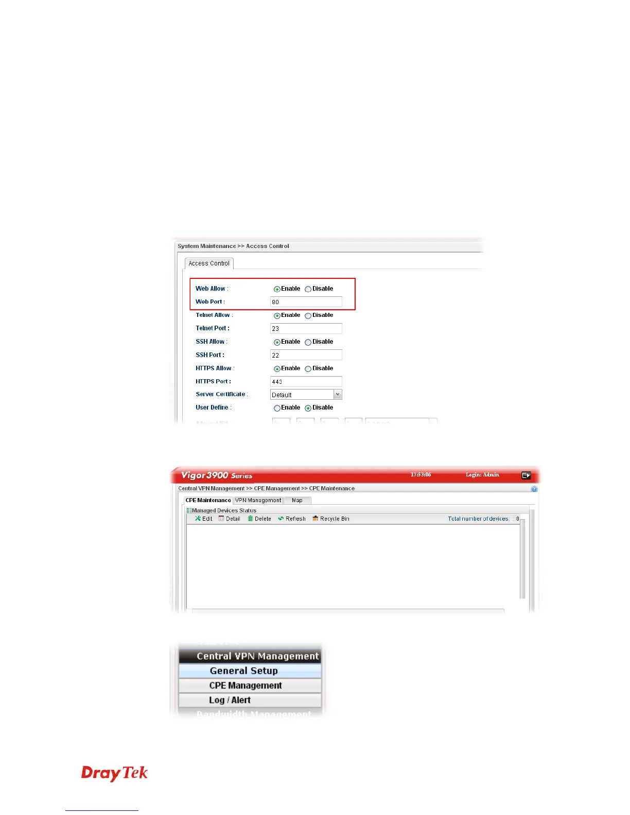 To manage CPEs through Vigor3900, you have to set URL on CPE first and set username