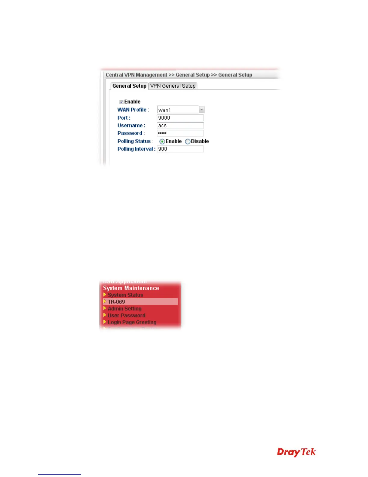 Management>>General Setup in Vigor3900. Then, click Enable for CPE Client and