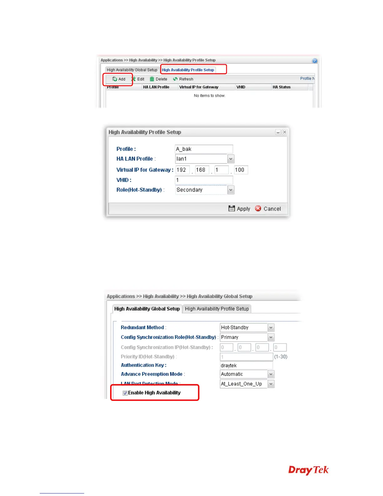 Global Setup. Locate Enable High Availability. Check the box and click Apply to