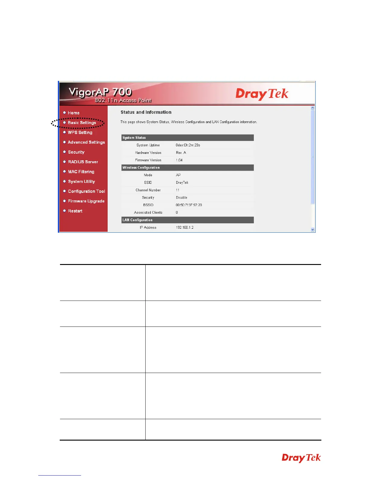 This access point can be operated in different modes; you can click Basic Setting on the left of