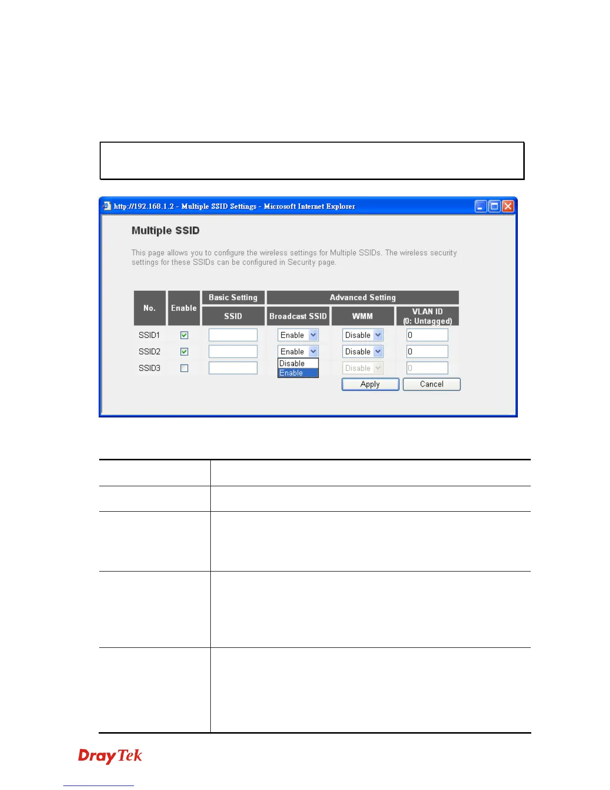 SSID Please input the SSID name (the name used to identify this VigorAP