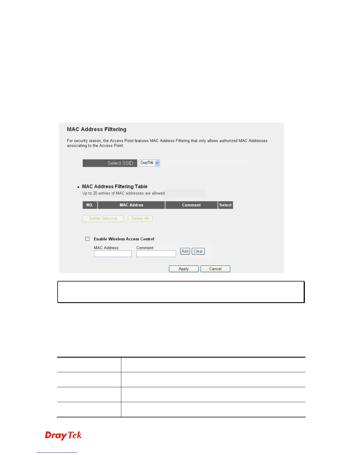 page. For adding new MAC address, please type new MAC addresses in the MAC Address