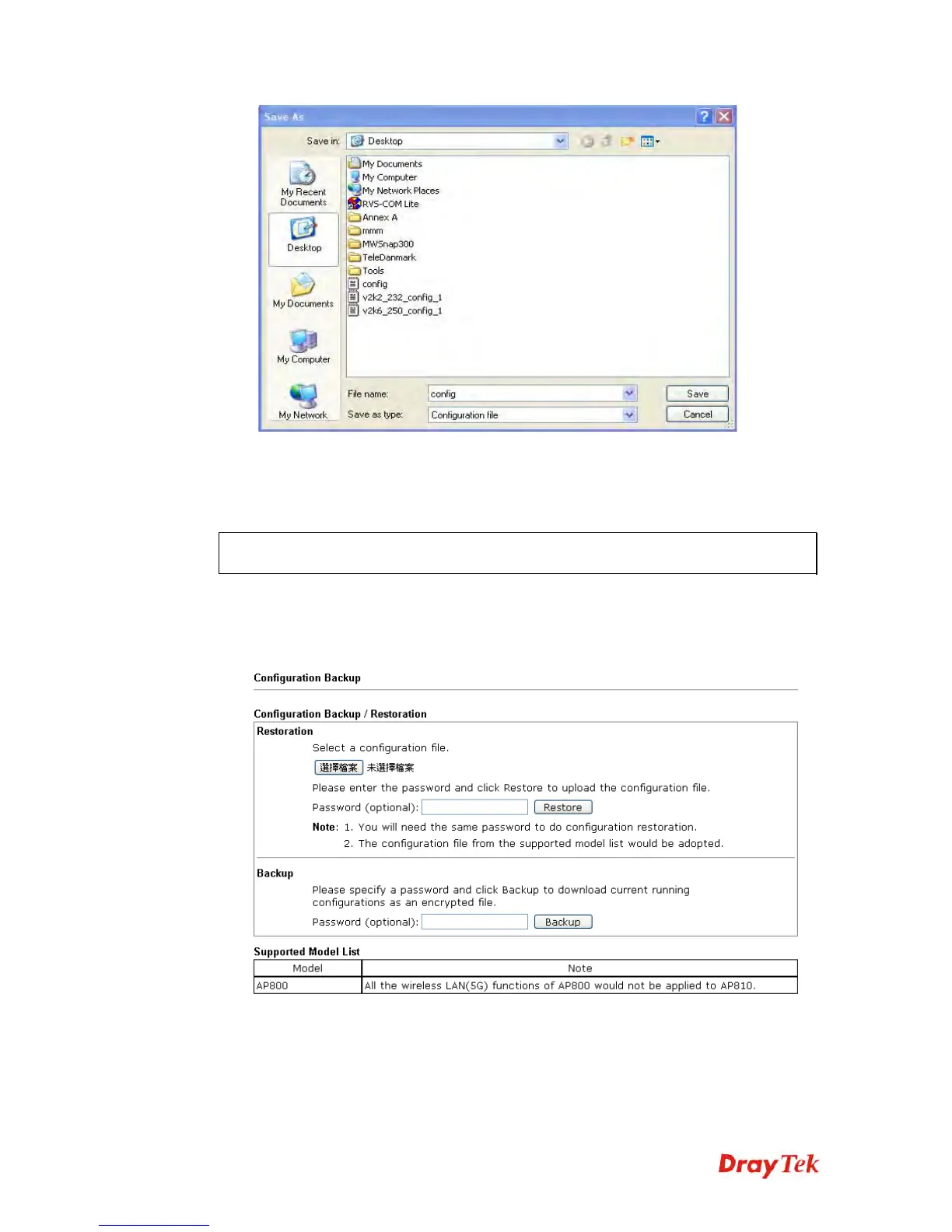 1. Go to System Maintenance >> Configuration Backup. The following windows will