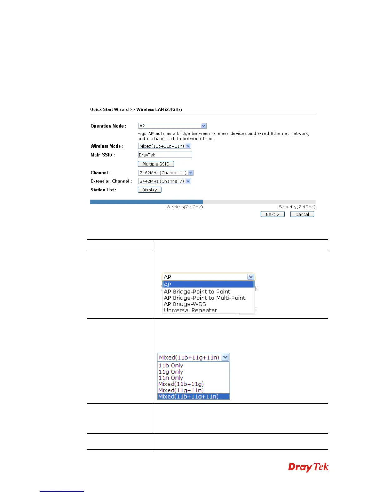Quick Start Wizard will guide you to configure 2.4G wireless setting and other