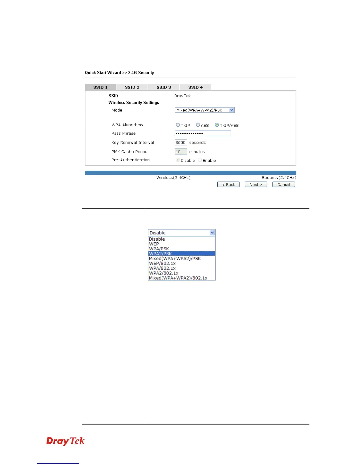 authentication. Select WPA, WPA2 or Auto as WPA mode.