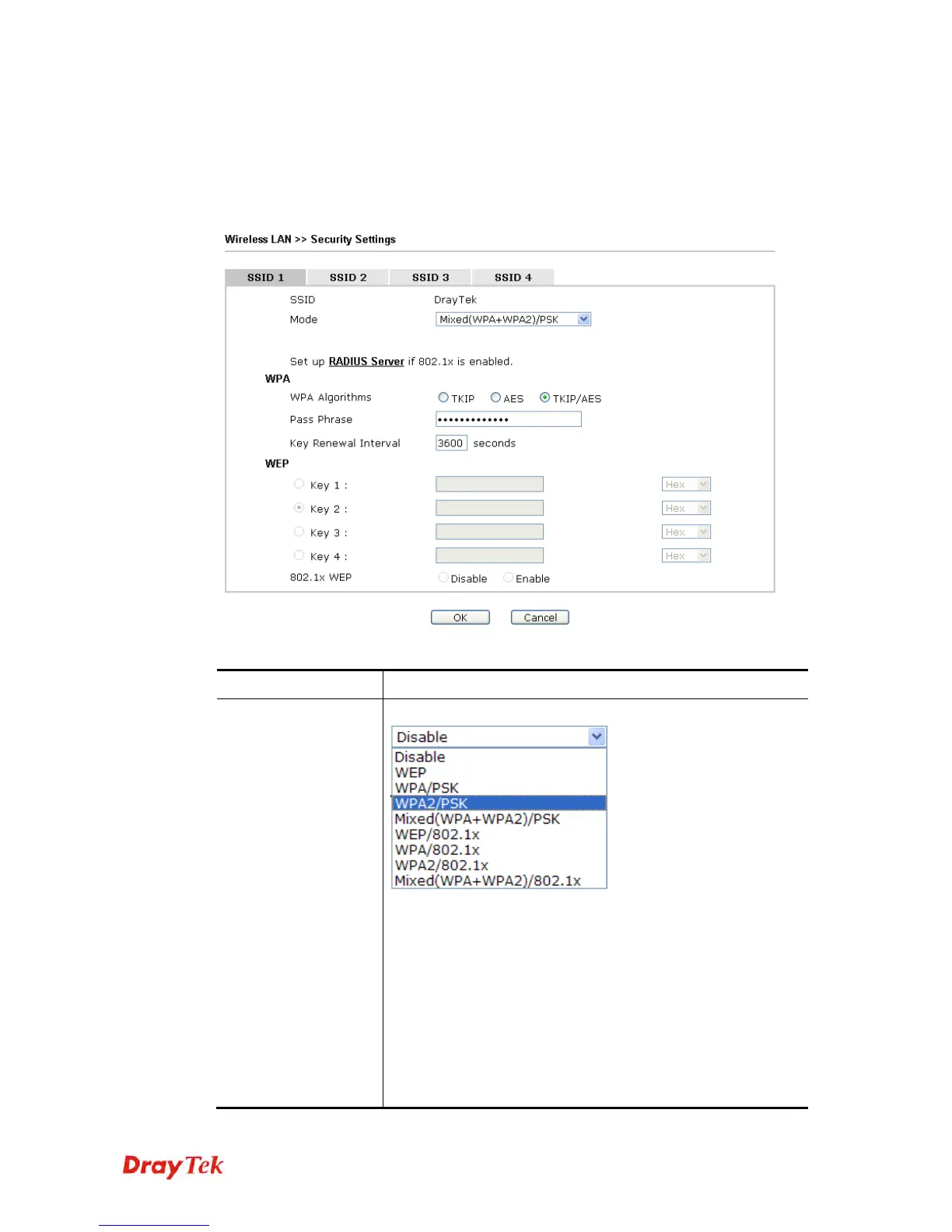 This page allows you to set security with different modes for SSID 1, 2, 3 and 4 respectively.