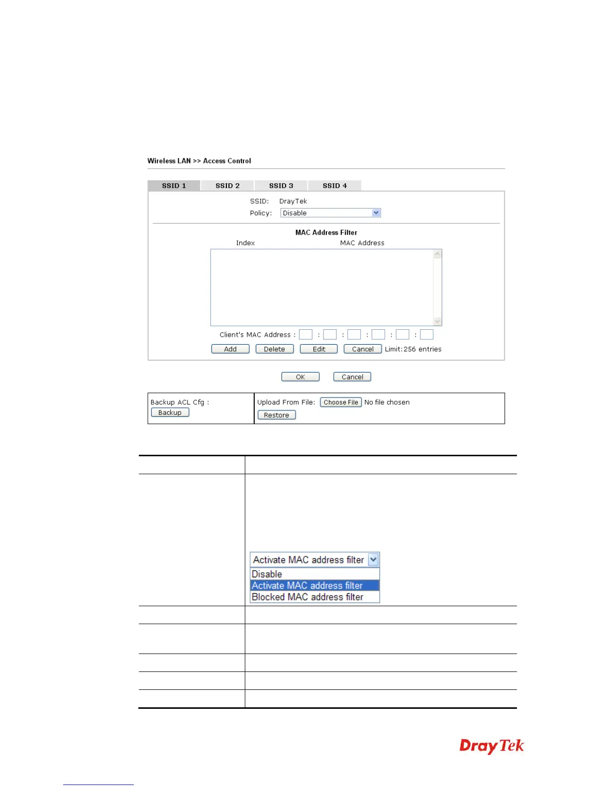 For additional security of wireless access, the Access Control facility allows you to restrict