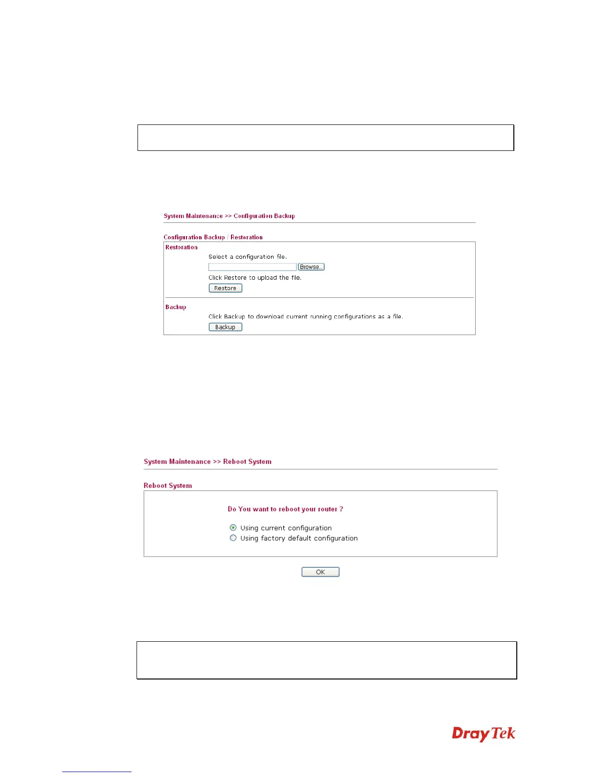 1. Go to System Maintenance >> Configuration Backup. The following windows will