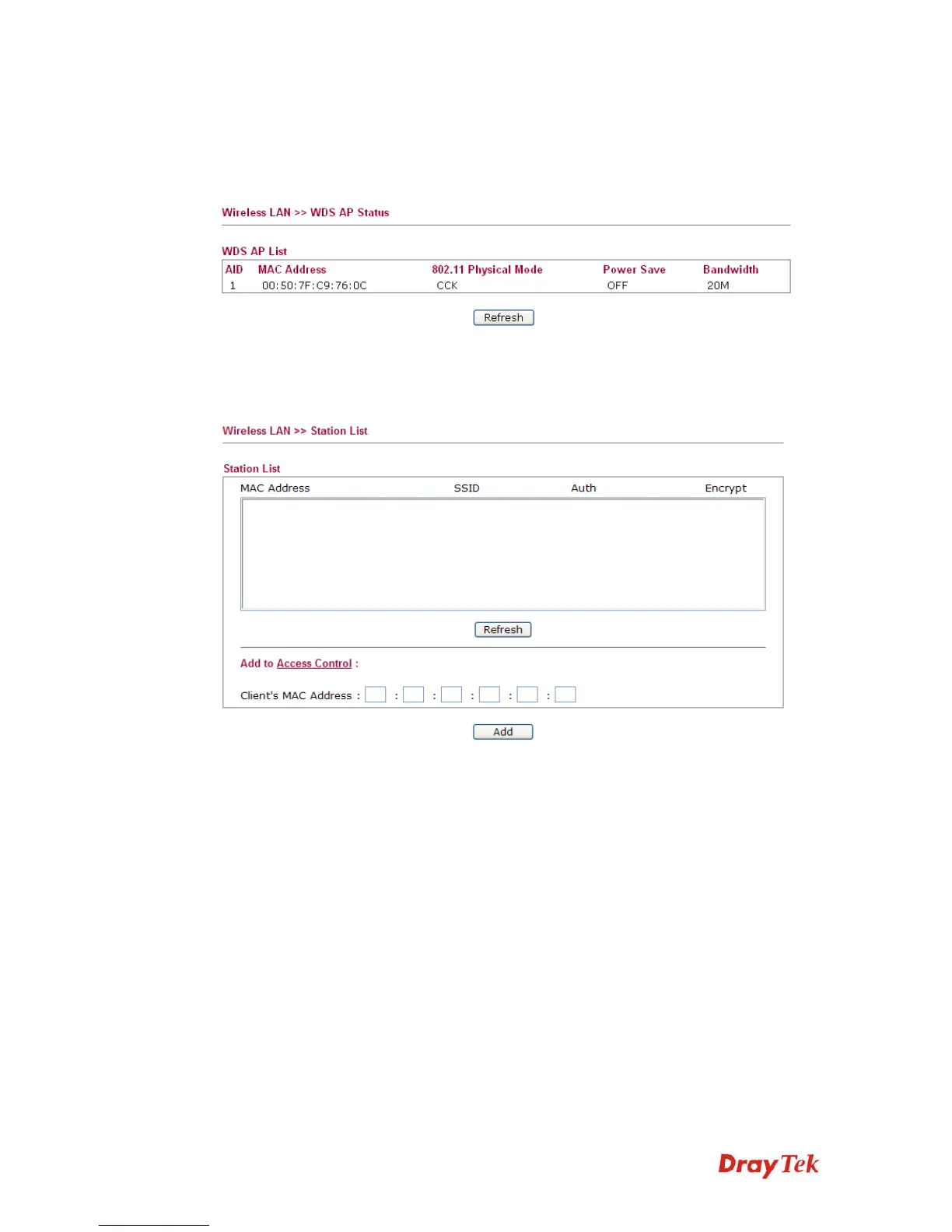 bandwidth for the working AP connected with WDS. Click Refresh to get the newest