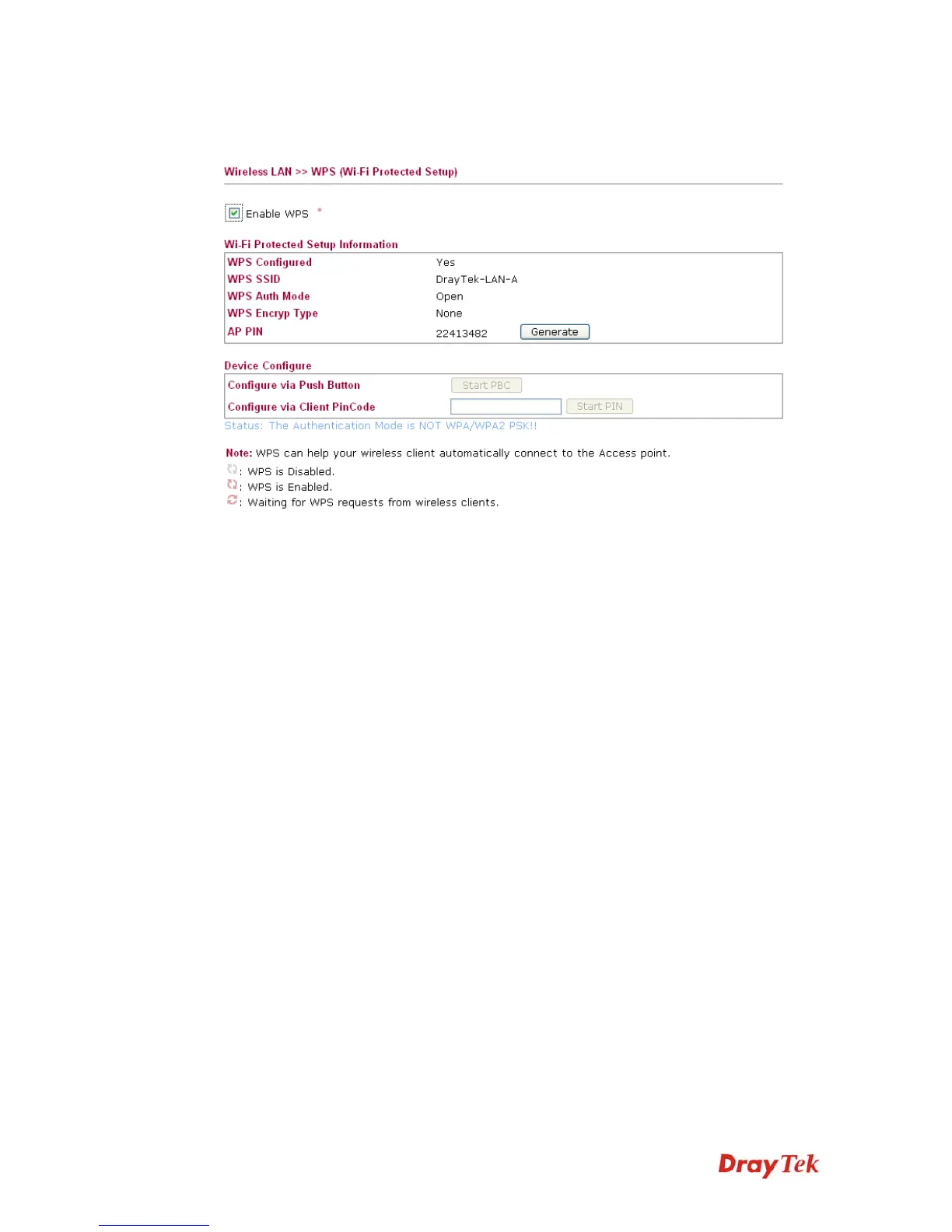 Check this box to enable WPS setting.
