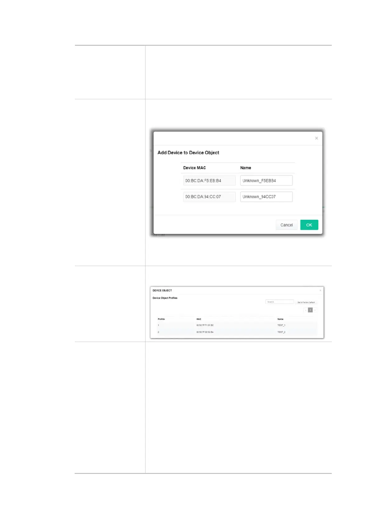 Device Object list The existed device object profiles will be shown on the following