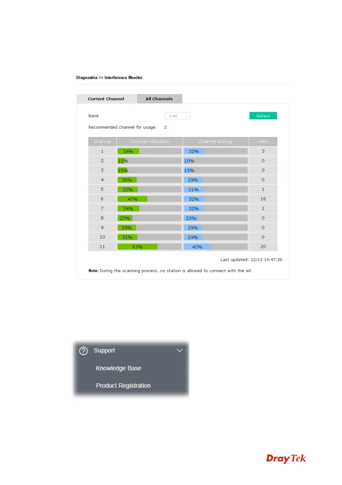 This page displays the utilization and energy result for all channels based on 2.4G/5G. Click