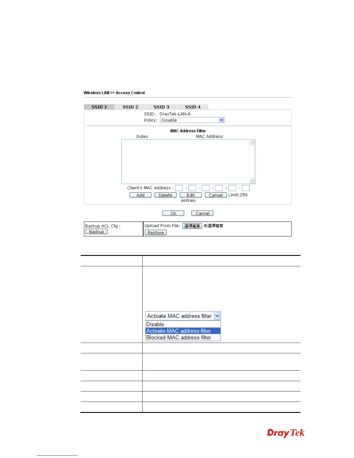 For additional security of wireless access, the Access Control facility allows you to restrict