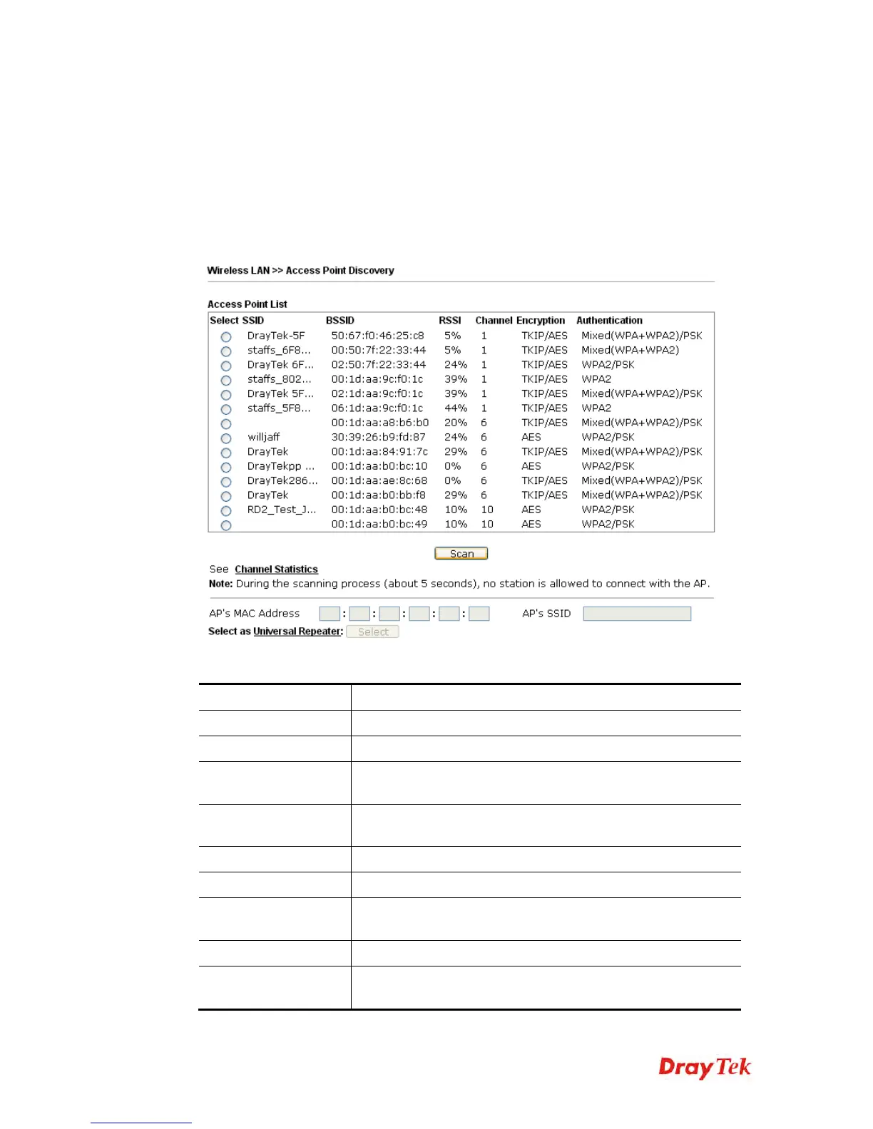 which is in the same channel of VigorAP 810 can be found. Please click Scan to discover all